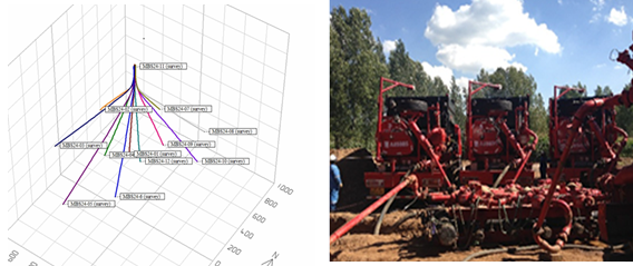The 2014 project of 4G (cluster multiple stage fracing single branch horizontal well) in xxx block Shanxi Libi, a cluster horizontal well project xx 05P well group was adopted double well platforms, currently 2 wells have completed among the 6 designed wells.