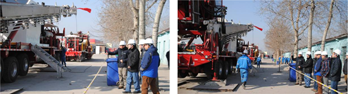 After the site visit, both the visitors and hosts had a technical exchange meeting held in Zhengding Guotai Hotel Meeting Room. Chief Engineer Mr Zhao has chaired the discussion, the coiled tubing engineer make a report to the session, which was mainly introduced subsurface engineering and technological development and the coiled tubing unit and tools were highlighted in the introduction. Mr Liu from SINOPEC has raised questions of his interests in the technical exchange, which was answered by Orion VP, Production Affairs Tony Shang. SINOPEC Mr Liu showed interests to the big capacity drum and said that the Orion’s 2-3/8 "4600 meters coiled tubing shall have advantage in fracing job for Fuling, Sichuan province. SINOPEC Mr Liu called for a special technical session in Beijing with better preparation of relevant documentations.